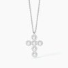Girocollo regolabile da donna in argento rodiato con catena forzatina, ciondolo croce e zirconi bianchi. Larghezza della catena forzatina 1,5 mm. Dimensione del pendente 17,5 x 23,5 mm. Diametro degli zirconi bianchi 3 e 1,25 mm. Lunghezza regolabile da 40 a 45 cm.